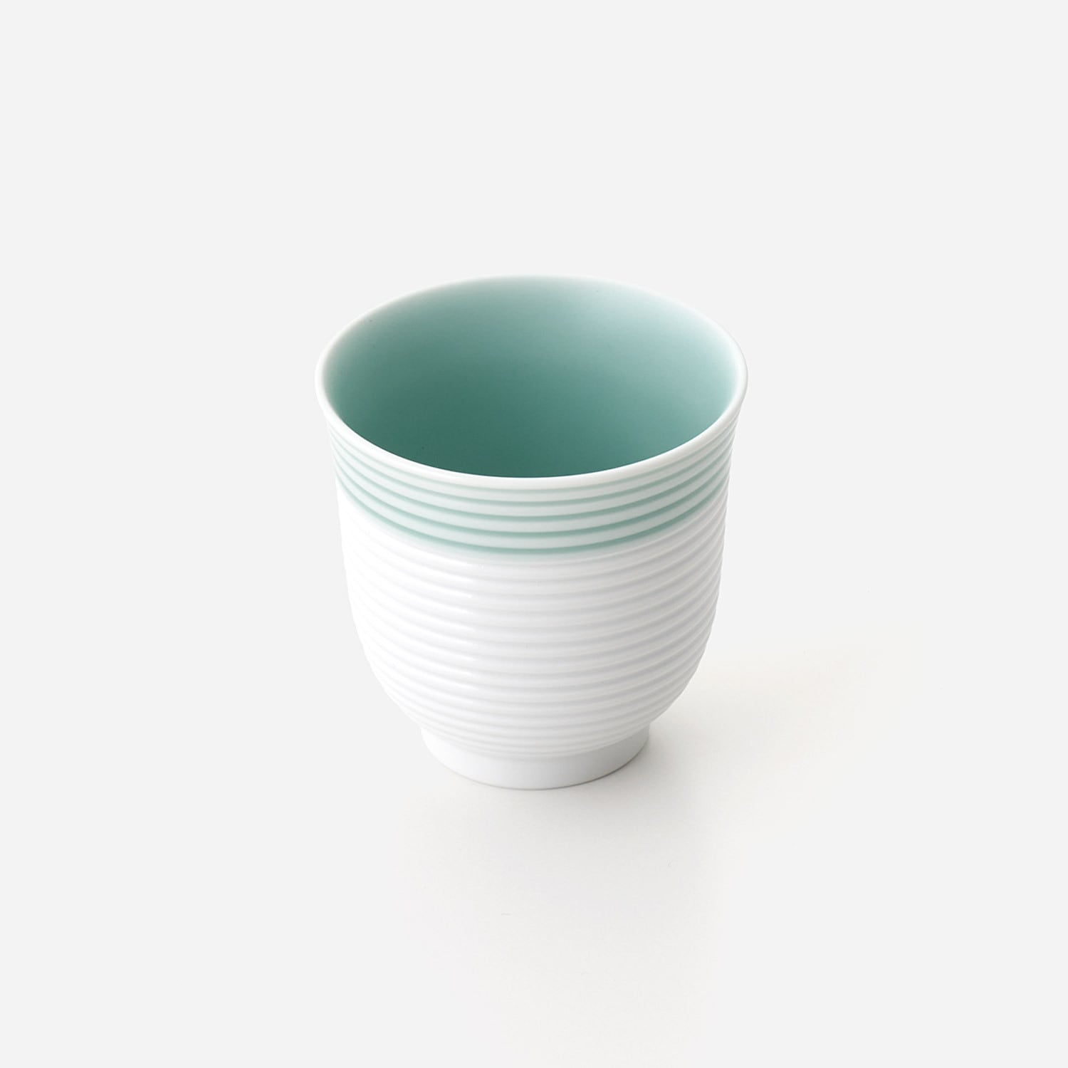 白磁半マットと青磁のブルーのツートンデザインの湯呑です。
